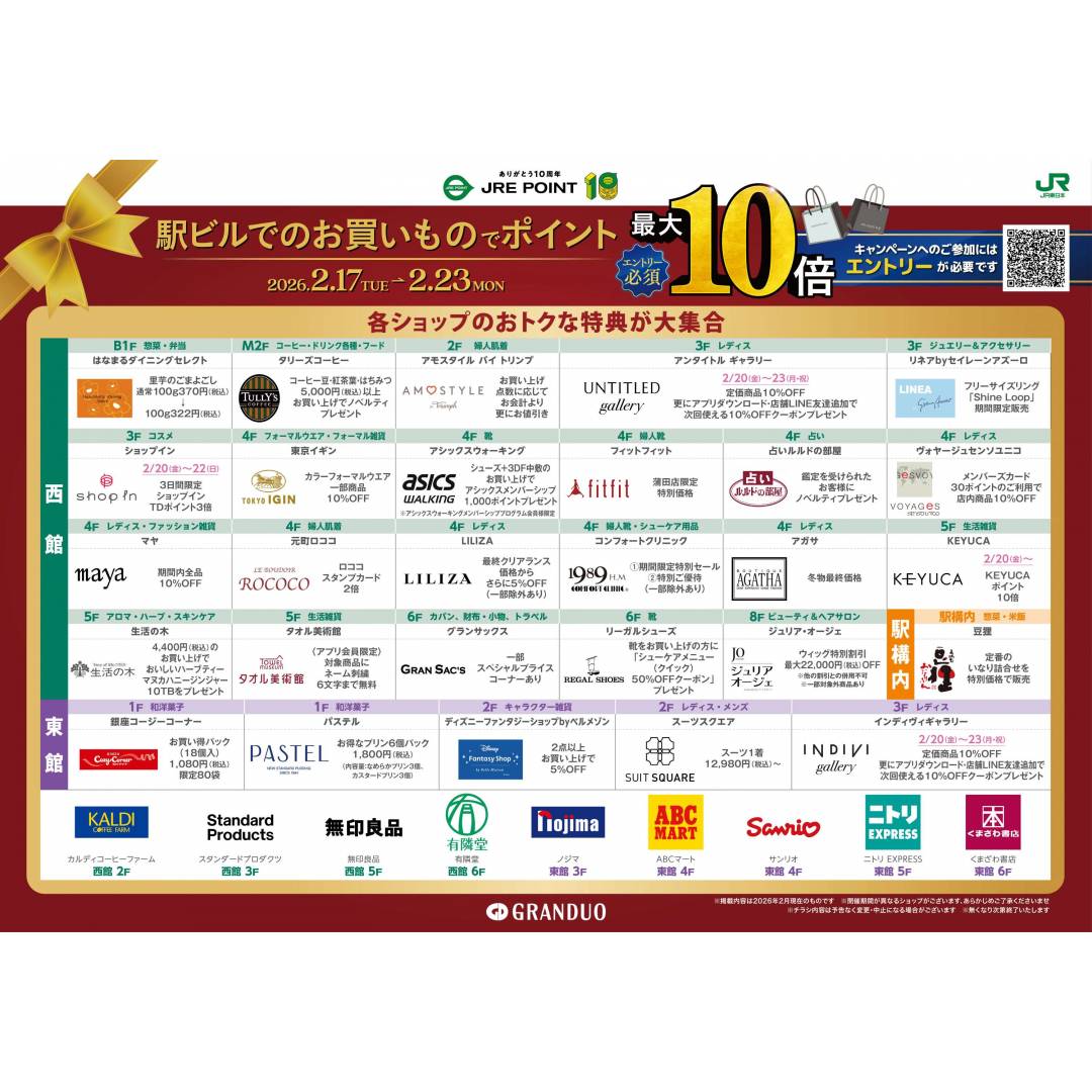 エントリーのうえ、グランデュオ蒲田の対象店でお買いものをすると、
