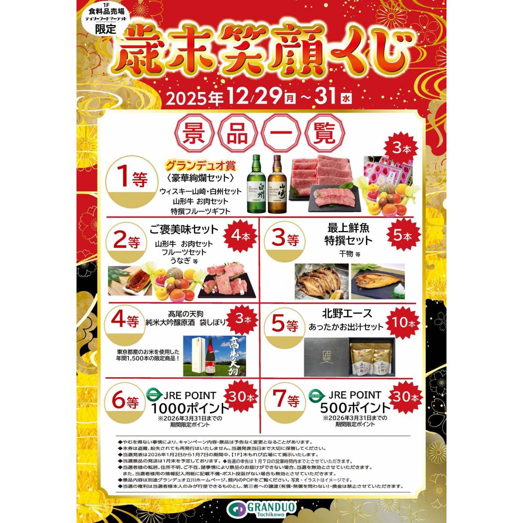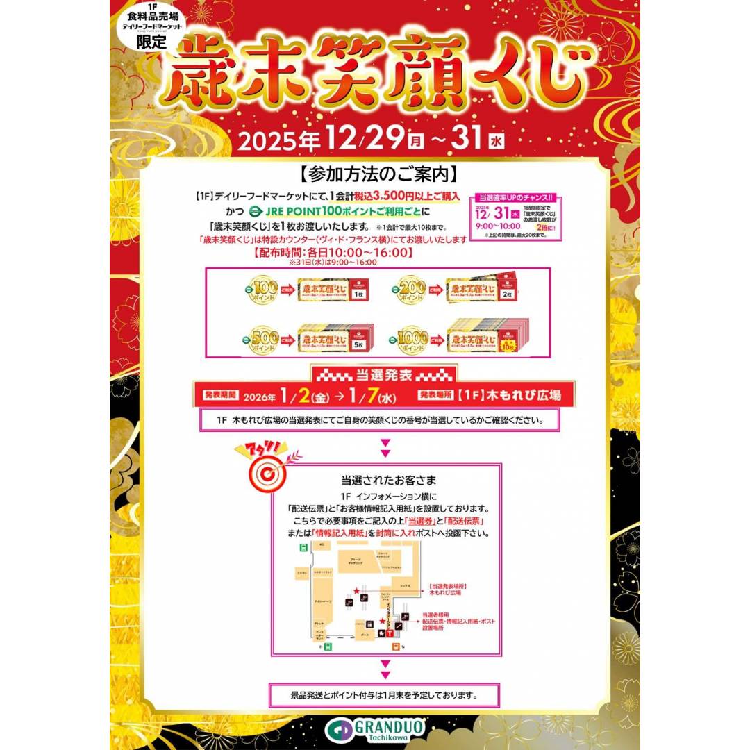 12月29日(月)~12月31日(水)に【歳末笑顔くじ】を開催いたします!