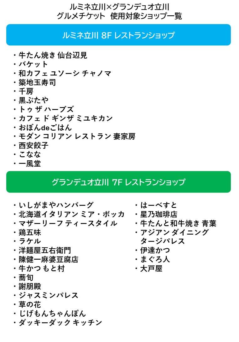 ルミネ立川・グランデュオ立川でのお食事が合計600円お得になるグルメチケットを販売!