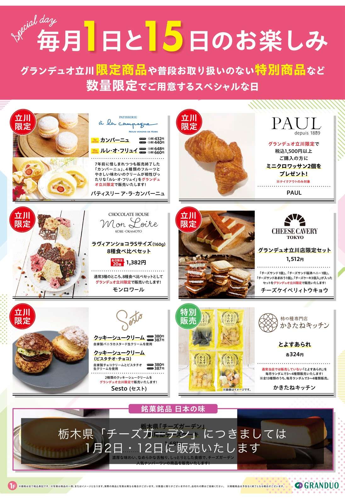 毎月1日と15日は、グランデュオ立川でしかお取り扱いのない商品や、