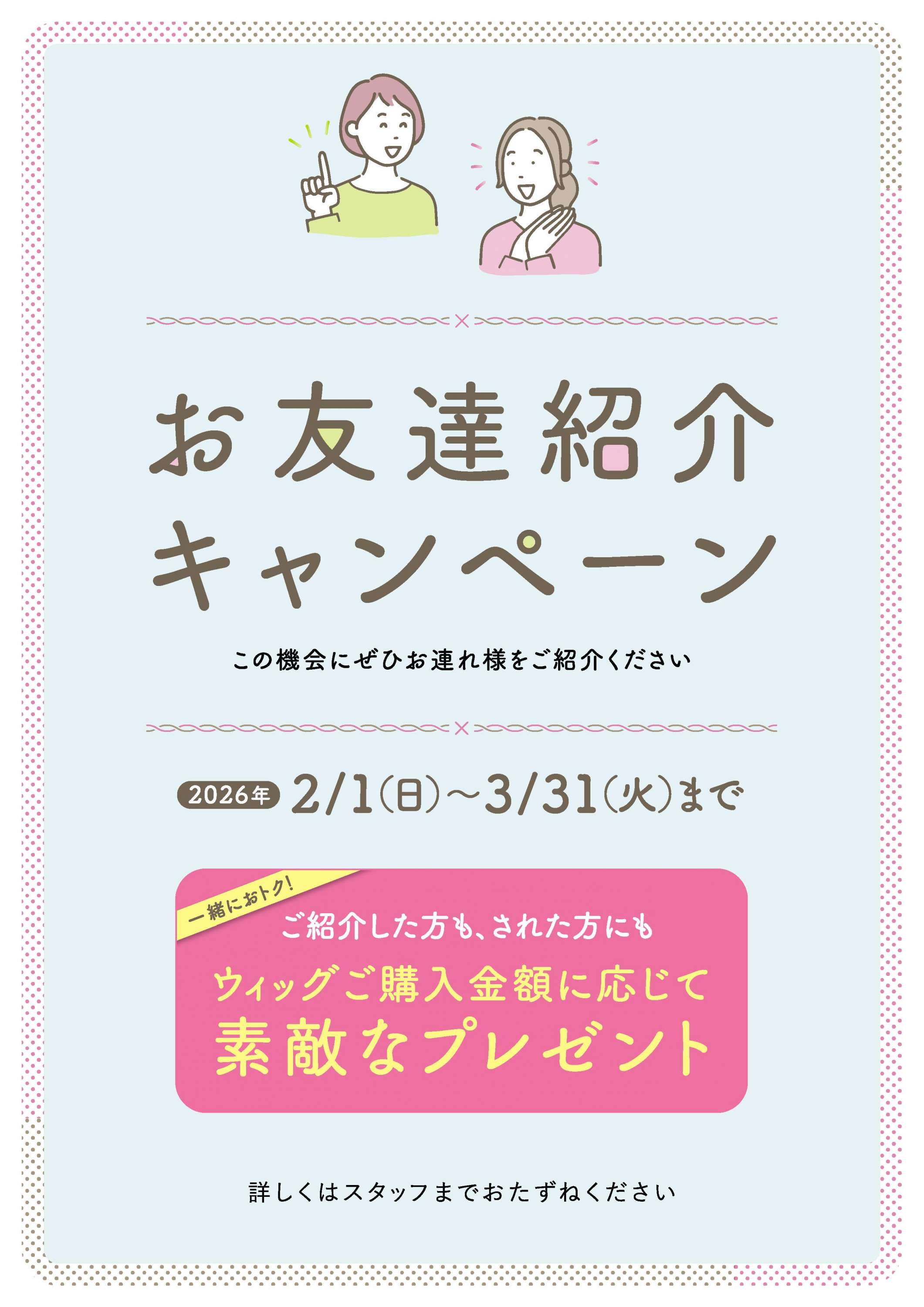 ご紹介した方も、された方にもウィッグご購入金額に応じて素敵なプレゼント