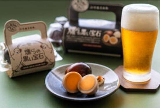 厳選した新鮮なうこっけい卵を 殻ごと昆布と塩で炊き込み、 7日間かけて真っ黒になるまで燻した贅沢な燻製たまご。
