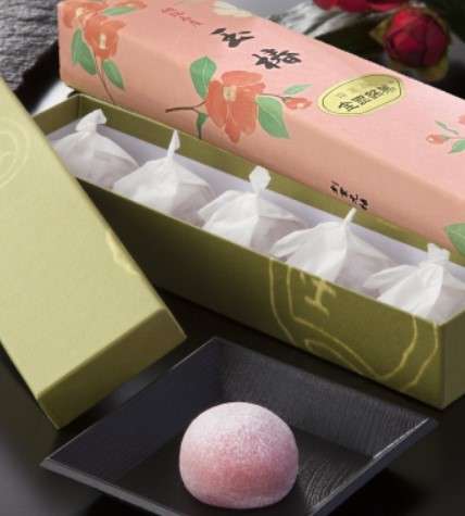しっとりとした黄身餡を薄紅色の求肥で包んで「椿の花」に見立てており、原材料に